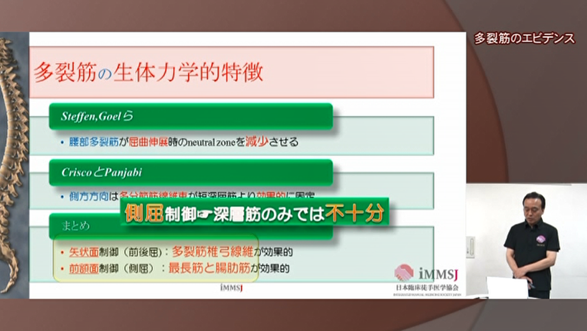 今の最新のエビデンスをお話するだけではなく、腹腔内圧理論に始まり後部靭帯系理論、深層筋系理論に至るまで、歴史の変遷についても説明してある数少ないDVDの内容です。ここを一度知っておくと、今後文献を読むとき、セミナーに参加したときの理解が深まります。